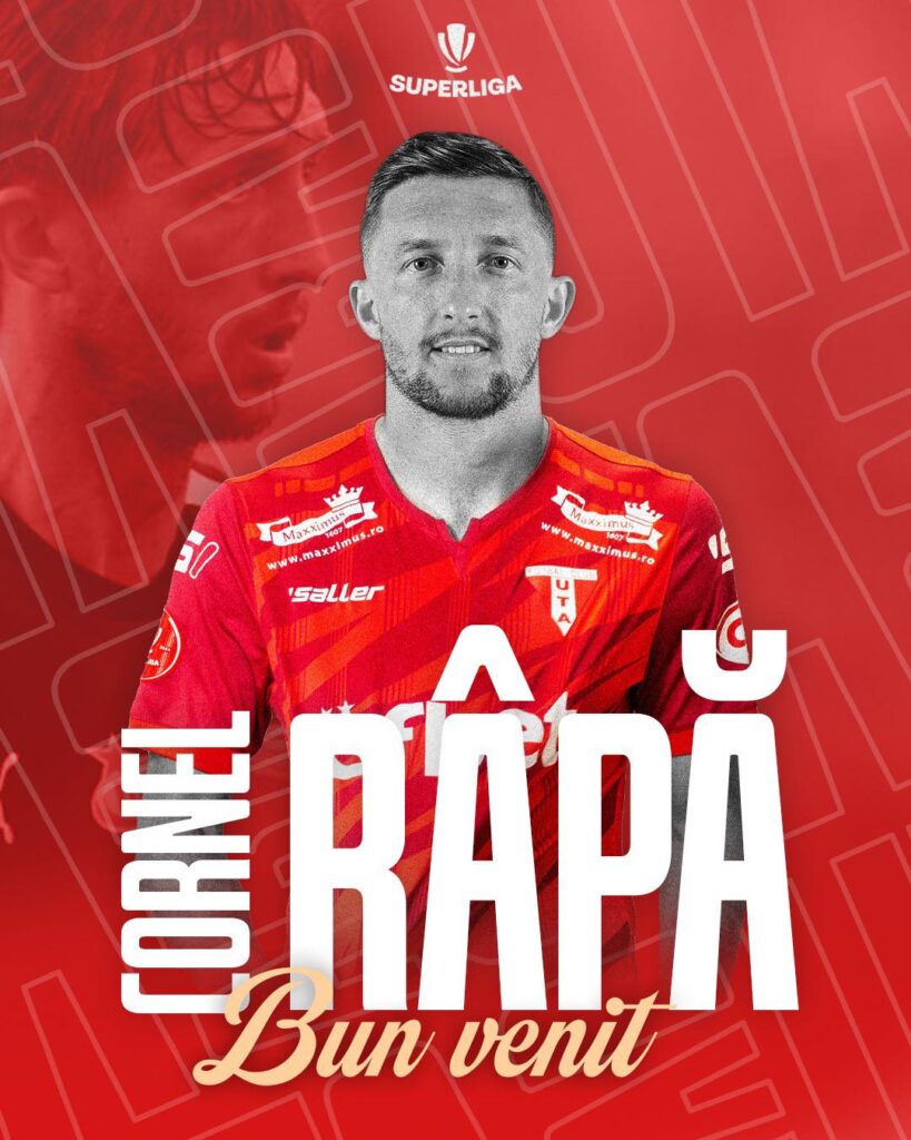 „Bun venit, Cornel Râpă! Fostul internațional al României, Cornel Râpă, este, de astăzi, noul jucător al UTA-ei!