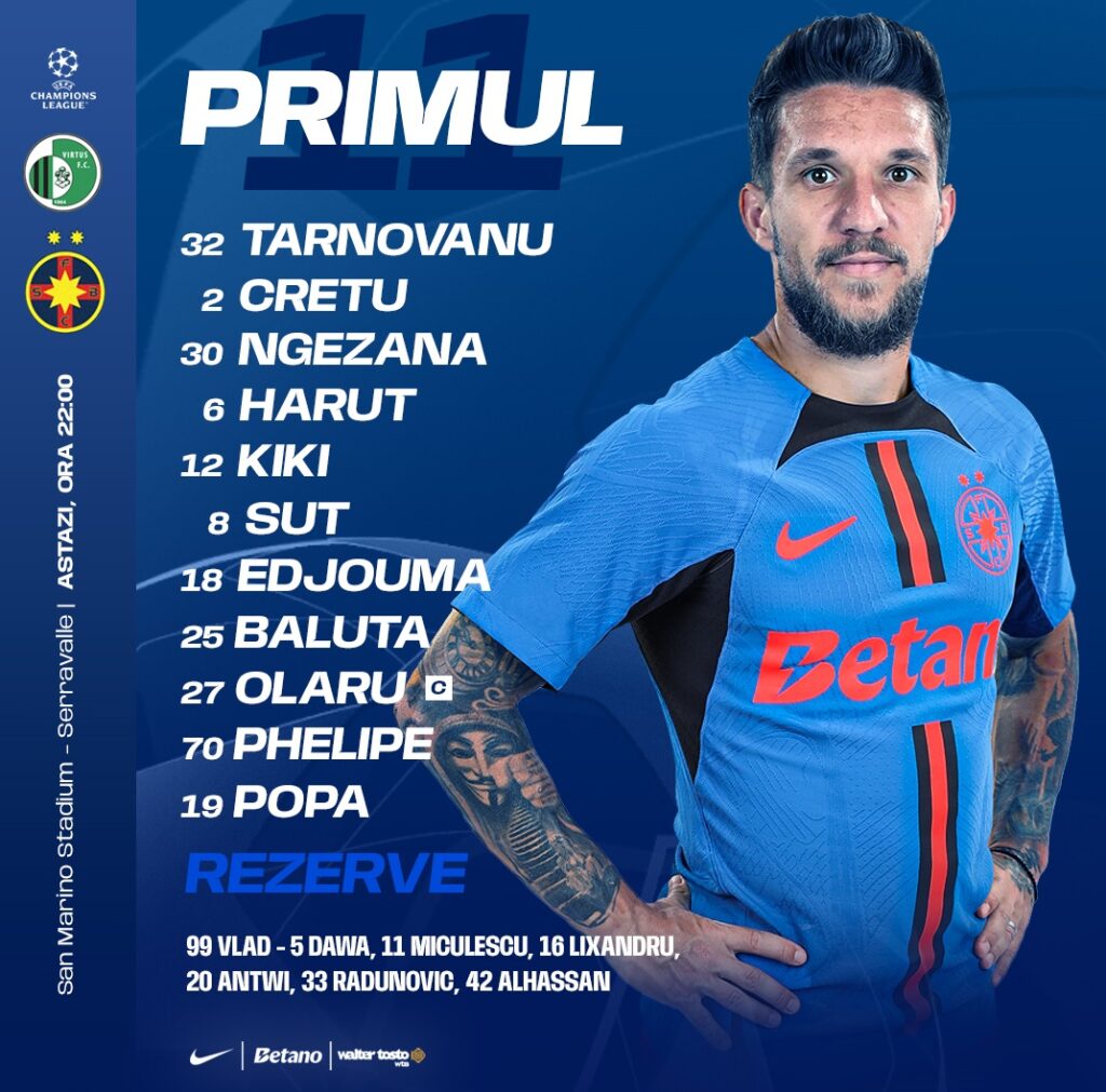 FCSB începe sezonul european, astăzi, de la ora 22:00, în partida din deplasare cu Virtus din San Marino, în primul tur preliminar din Liga Campionilor.